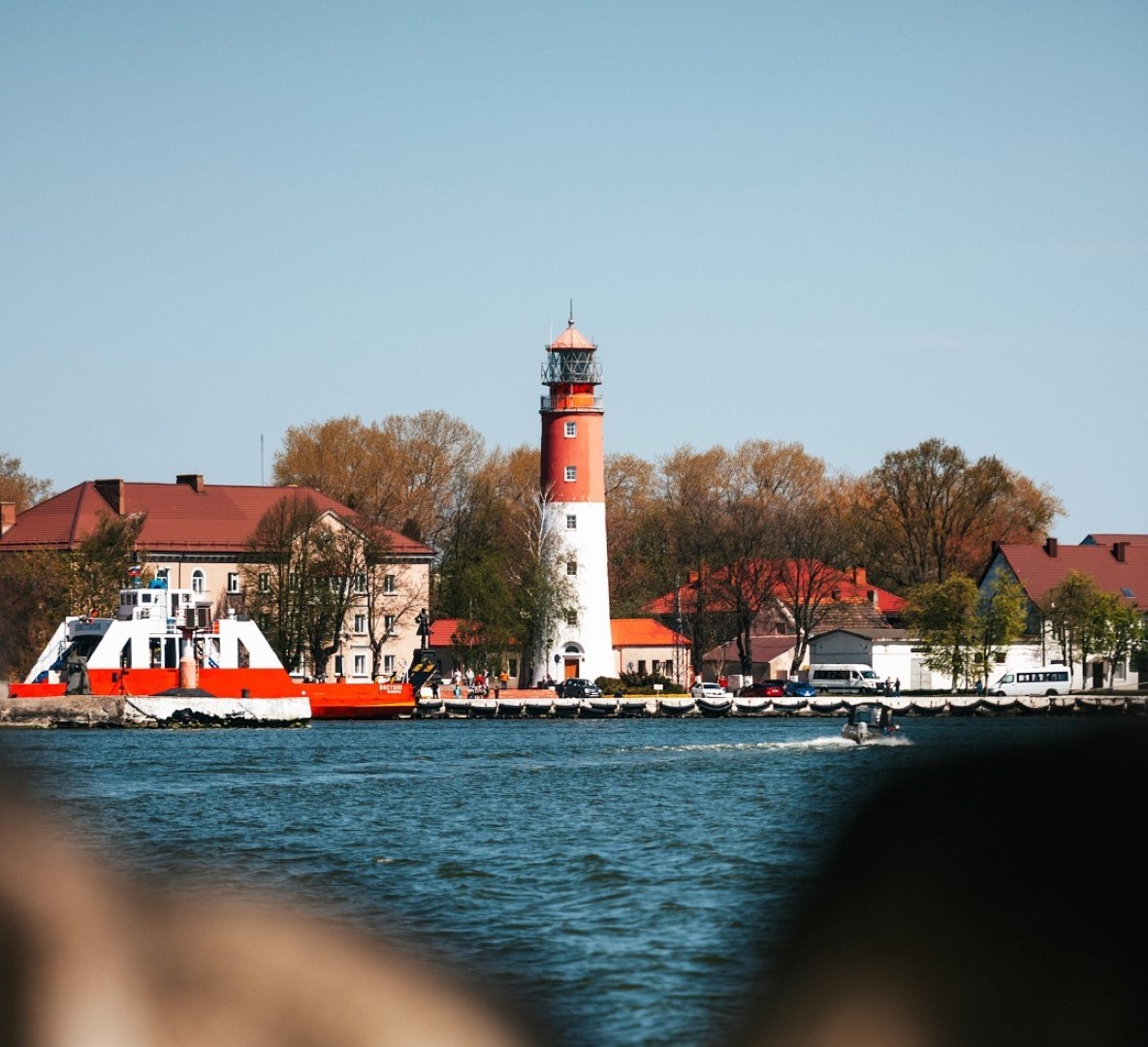 50 км, 45-60 минут. Самый западный город России, база Балтийского флота. Крепость Пиллау, маяк, цитадель.